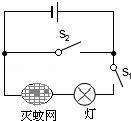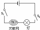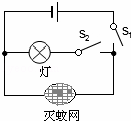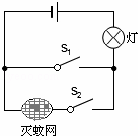 如图所示的电蚊拍,具有灭蚊和照明等功能.当开关S1闭合,S2断开时,只有灭蚊网通电起到灭蚊作用;当开关S1和S2都闭合时,灭蚊网与灯都通电同时起到灭蚊和照明的作用.下列电路设计符合这种要求的是( )
