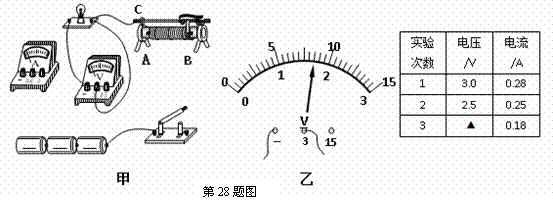 (2)该组同学连接好电路,将滑片P移到A端,并用开关试触,检查无误后,闭合开关,并调节滑片P,虽然两表示数能够发生变化,但发现灯泡电压无法降低到2.5V,其原因可能是______________▲______________.