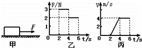 如图甲所示,放在水平地面上的物体,受到方向不变的水平拉力F的作用,F的大小与时间t的关系如图乙所示;物体运动的速度v与时间t的关系如图丙所示.则下列说法中正确的是( )