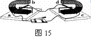 同学们做实验的装置如图15所示,闭合开关,先将导体ab水平向右移动,导体cd也随之运动起来.可知:实验装置左侧运用的原理是 ;实验装置右侧产生的现象在生活中的应用是 (举—个实例) .