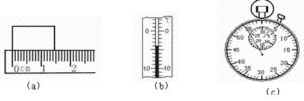 写出以下三种仪器的读数:图(a)中物体的长度是 ▲ cm;图(b)中温度计的示数是 ▲ ℃;图(c)中秒表的读数是 ▲ s.