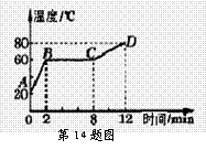 用稳定的加热设备给一种固体持续均匀地加热一段时间,根据测量结果绘出了如图8所示的温度-时间图像.由图可知该固体是 ▲ (选填“晶体”或“非晶体”),该物质在B点时的内能 ▲ (选填“大于”、“小于”或“等于”)在 C点时的内能.