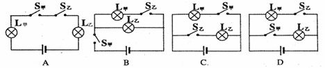 击剑比赛中,当甲方运动员的剑(图中用“S甲”表示)击中乙方的导电服时,电路导通,乙方指示灯亮。当乙方运动员的剑(图中用“S乙”表示)击中甲方的导电服时,电路导通,甲方指示灯亮。下面不能反映这种原理的电路是 ( )