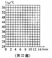 (2) 请在右面坐标图中通过描点画出上述温 度随时间变化的曲线。