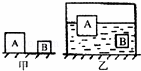 质量相同的两个实心正方体A和B,如图(甲)所示,将它们放在水平地面上时,它们对地面产生的压强为pA和pB.当将它们放入水中后分别静止在如图(乙)所示的位当位置,它们受到水中的浮力为FA和FB,则( )