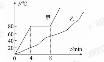 如图是甲、乙两种物质熔化时的温度—时间图像,其中物质_____是晶体,它的熔点是_____℃,在第6min时,这种晶体处于_____状态.