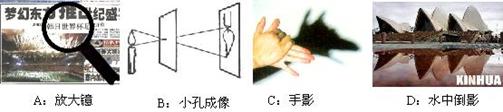 如图1所示,图A是由光的 形成的,图B的手影由光的________形成的。