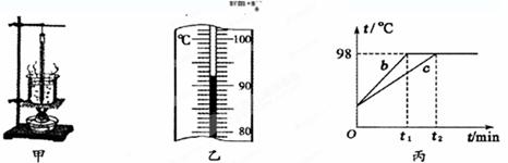 (3)B、C两组同学虽然选用的实验装置相同0,但将水加热到沸腾用的时间不同,他们绘制的温度随时间变化的图像如图丙所示。分析图像可知:水的沸点是_____℃,当时的大气压_____ (选填“<”、“>”或“=”)l标准大气压;B、C组得到b、c两种不同图像的原因可能是水的_____不同。