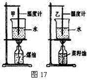 如图17所示的两套规格完全相同的装置,并每隔1min记录了杯中水的温度(见下