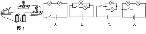 如图5甲所示,有带风叶的小电动机一台,电热丝一段,开关两只,插头一只,导线若干。利用这些器材可以连接成一个有冷、热两档风的简易电吹风电路。要求在使用时,只要断开S1,则既无风也不发热;只闭合S1时吹冷风;闭合S1和S2时吹热风.右边是某物理兴趣小组的四位同学分别设计的四种电路连接图,其中符合要求的是( )