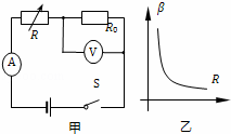 某型号天燃气泄漏检测仪器的电路如图甲所示,图中R为气敏电阻,其阻值R与天然气浓度β的变化关系如图乙所示,已知R0为定值电阻,电源电压恒定不变,用此仪器检测天然气是否泄漏,则下列判断正确的是【 】
