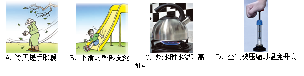 图4所示的事例中,通过热传递的方式改变物体内能的是