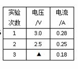 电流I/A | 0.18 | 0.2 | 0.22 | 0.28 | |
