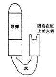 如图是美国“宾夕法尼亚”号核潜艇在水下30m深处发射导弹的示意图。固定在缸上的火箭尾部燃料燃烧,喷出高温燃气,水因过热而顿时转化为蒸汽,蒸汽推送导弹穿越海面,导弹在空气中点火升空。关于水下发射导弹,下列说法中,不正确的是( )