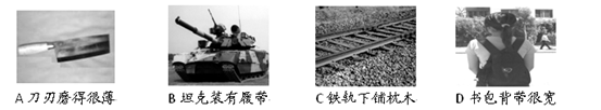 | A.增大压力。 | B.增大受力面积。 | C.减小压强。 | D.增大压强。 |