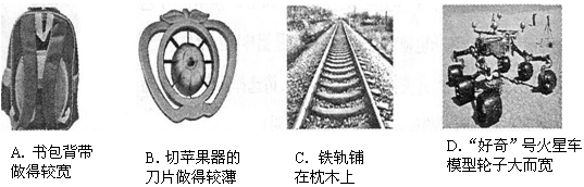 | A.甲图中将书包的背带做得较宽 | B.乙图中将切菜刀磨得更锋利些 |