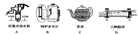 | A.闸室和上游水道构成连通器,水对阀门A两侧的压力相等 |