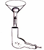 如图所示,将一个普通的乒乓球轻轻放人漏斗中,用电吹风从管口向上吹,那么以下分析正确的是 ![]()