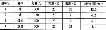 | 物质 | 质量/g | 初始温/℃ | 加热时间/min | 最后温度/℃ |