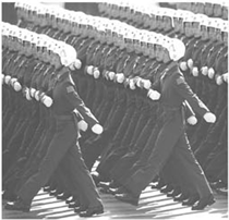 建国60周年国庆阅兵仪式中,从各个方向看队伍都是整齐划一,这是因为( )![]()