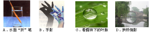 | A.竹的倒影 | B.水面“折”枝 | C.手影 | D.镜中花 |