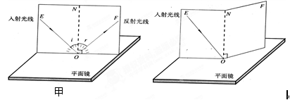 (8分)如图所示硬纸板是由E、F两块粘接起来的,可以绕ON转动,ON垂直于镜面,让入射光线沿纸板射向镜面上的O点.