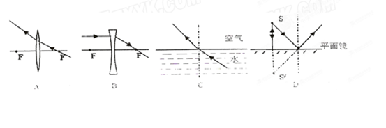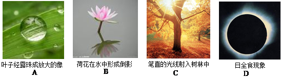 | C.患近视的同学戴眼镜矫正视力 | D.黑板发生“反光”现象 |