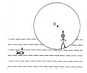 如图所示,小阳在公园水面上玩水上滚球的游戏,人处于充足空气的薄壁透明塑料圆球里,他发现水下A处有一条金鱼,设小阳的眼睛在B处,圆球的球心在O点。请你作出小阳观察到金鱼的光路图及确定金鱼实际的大致位置。