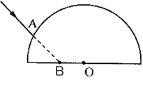 如图所示一束光从半球面上的A 点沿AB方向射入半球形玻璃砖,已知半球形玻璃砖的球心为O。请画出这束光线从射入玻璃砖到射出玻璃砖的光路图。(不画反射光线)