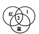 如图是色光三原色示意图,图中区域1、区域2分别应标颜是 ![]()