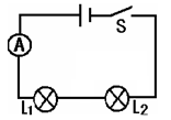 小宇同学用电流表测两只电灯串联后的电流(如图),他发现开关S闭合后,两只电灯都发光,但电流表却纹丝不动,则可能的故障原因是( )。![]()