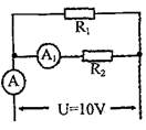 如图所示,R1=10欧姆,电流表A1示数为0.5安培,电源电压为10伏特。下列叙述不正确的是( )![]()