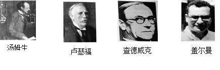 图中四位科学家在研究探索微小粒子方面曾取得了辉煌的成果。其中发现电子的科学家是 ![]()