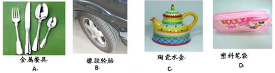 | A.塑料笔袋 | B.玻璃水杯 | C.绘图橡皮 | D.钢制小刀片 |