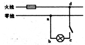 小阳闭合开关后,发现电灯不亮,他用试电笔测试图中的a、b、c、d四点,只有d点发光,那么可能发生的故障是 ![]()
