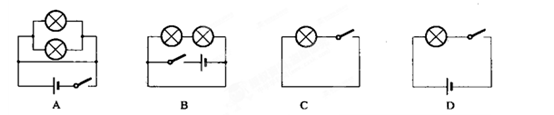 | D.两灯比较,通过不发光的灯泡的电流较小 |