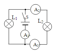 | C.电流表A2、A3示数相同,A1示数大于A2、A3的示数 |