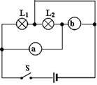如图所示,L1和L2是两只相同的小灯泡,a、b是电流表或电压表。闭合开关S后,若两灯都能发光,则![]()