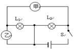 如图所示,闭合开关S,两灯都正常发光,两电表指针都有偏转,示数稳定。已知电源电压为8V,灯L1的电阻为16Ω,灯L2的电阻为12Ω,则甲电表的示数为_________,乙电表的示数为________。