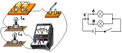 实验器材:两节干电池,2.5V小灯泡两个,电流表一个,开关一个,导线若干.