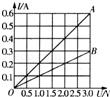 在某一温度下,连接在电路中的两段导体A和B中的电流与其两端电压的关系如图所示.由图中信息可知( )![]()