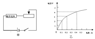 如图甲所示,电源电压恒为9V,滑动变阻器的最大阻值为100Ω,电流在0.1A~0.4A之间时电子元件均能正常工作.若通过此电子元件的电流与其两端电压的关系如图乙所示,则下列判断正确的是![]()