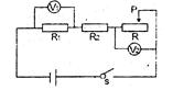 如图所示的电路中,电路两端电压不变,当滑动变阻器滑片P由右向左滑动但没有到达滑动变阻器左端的过程中( ) ![]()