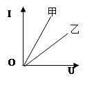 用伏安法测甲、乙两个导体的电阻时,分别测出了通过导体的电流I和电压U,然后作出了I—U的图像如图,由此可以判断: ( )![]()