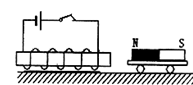 在“探究感应电流产生条件”的实验中,小明将导体ab、开关、小量程电流表和蹄形磁体按如图所示的方式进行安装。![]()