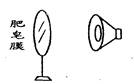 在探究人耳怎样听到声音时,可用肥皂膜模拟人耳的鼓膜。如图所示,当喇叭发声时,肥皂膜将![]()