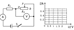 如图所示的电路中,R1为定值电阻,R2为滑动变阻器,电源电压不变.闭合开关S后,当滑片P从a端移动到b端时,记录的电压表示数U与电流表示数I如下表所示,请根据表中的数据在图中描点作图.滑动变阻器R2的最大阻值为 Ω.