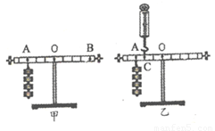 (2)如图甲所示,在杠杆左边A处挂四个相同钩码,要使杠杆在水平位置平衡,应在杠杆右边B处挂同样钩码____________个。