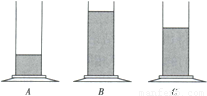 如图,A、B、C是三个完全相同的圆柱形玻璃容器,分别将质量相等的酒精、硫酸和盐水三种液体倒入容器中.根据下表中提供的有关数据,试判断A、B、C三个容器中分别装的是( )