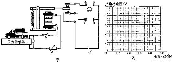 小明根据所学的电学知识,想设计一个汽车超载自动报警电路.他查阅了相关资料了解到压敏电阻是阻值随压力变化而变化的元件,并了解到压敏电阻在生活中的一种应用--压力传感器.压力传感器受到的压力越大,输出的电压就越大,用它可以称量汽车的重.某压力传感器输出电压与压力的关系如下表: